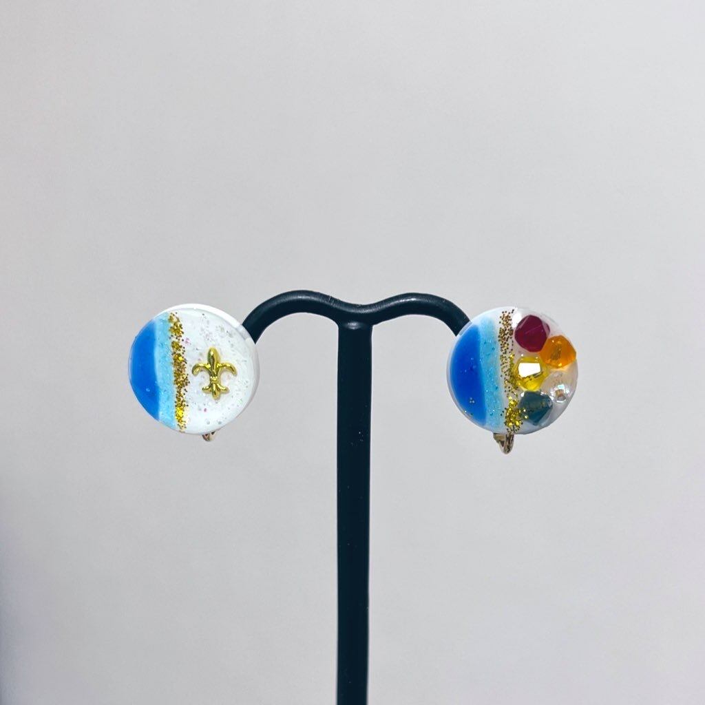 レジンで作成した、さりげないサイズ感のイヤリング・ピアスです。